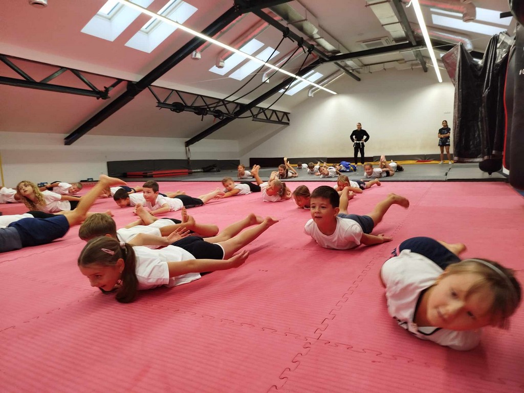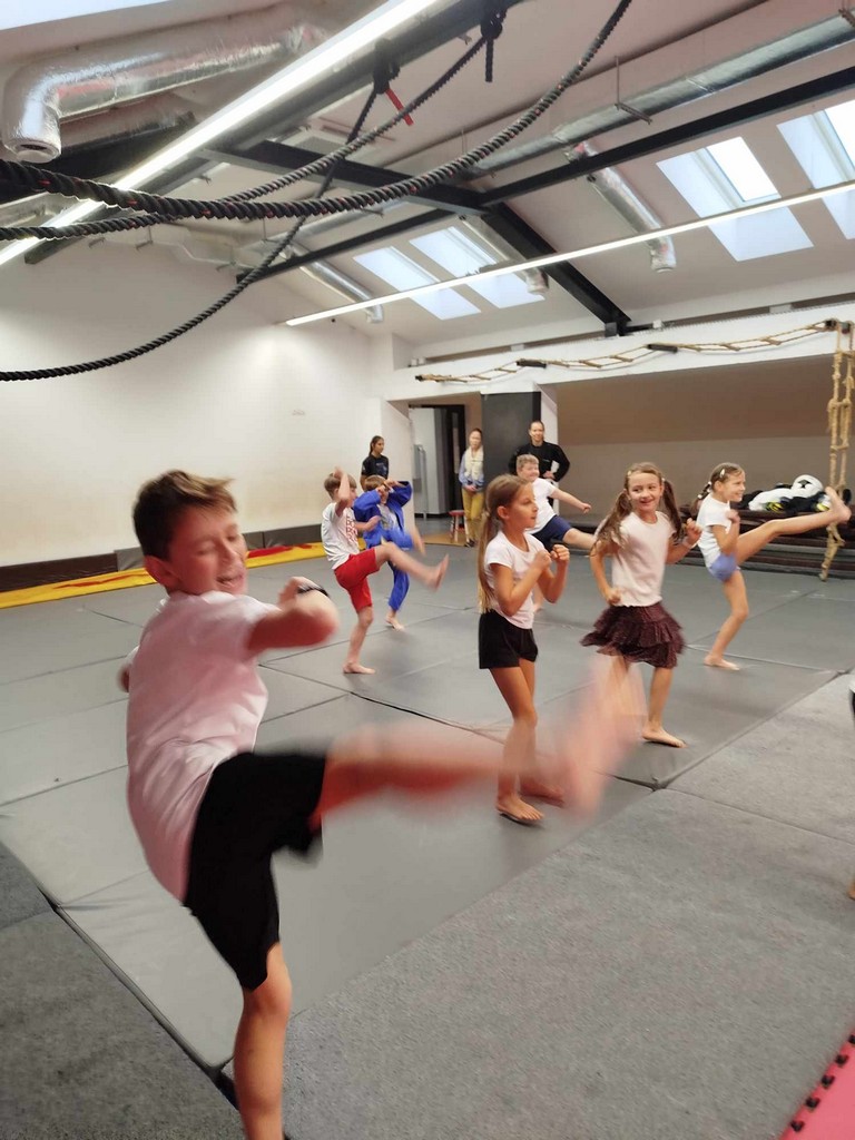 W dniu 30 września 2025 roku, z okazji Dnia Chłopaka, w Gorlickim Klubie Sportów Walki odbyła się wyjątkowa lekcja poprowadzona przez trenerów – Paulinę Mordarską i Tomasza Mordarskiego – doświadczonych szkoleniowców i zawodników sportów walki, a przede wszystkim rodziców ucznia naszej szkoły. Zajęcia miały charakter otwarty i integracyjny. Beneficjenci spotkania – uczniowie i uczennice klasy 2a – wzięli udział w profesjonalnie prowadzonym treningu, który łączył elementy kickboxingu, boksu oraz ogólnorozwojowych ćwiczeń sprawnościowych. Trener Tomasz Mordarski kładł szczególny nacisk na technikę, dyscyplinę oraz współpracę w grupie. Zobaczyliśmy podstawowy sprzęt ćwiczeniowy, różnego typu ochraniacze, mogliśmy założyć specjalne stroje i poznać niektóre sportowe pozycje i ruchy. Podziwialiśmy też imponująca kolekcję pucharów i medali. Atmosfera podczas zajęć była pełna energii, zaangażowania i dobrej zabawy. Wspaniale ten czas wykorzystali nie tylko chłopcy w dniu swojego święta, ale również dziewczynki. Na zakończenie wszyscy uczestnicy otrzymali pamiątkowe klubowe gadżety – opaski „Gorlickich Lwów”. Dzień Chłopaka w klasie 2a upłynął w sportowym duchu i z pewnością zostanie na długo zapamiętany przez wszystkich uczestników. Chętnie wrócimy na salę treningowa przy ul. Jagiełły 5, może przy okazji… Dnia… Dziewczynek…? A w klasie czekały na nas jeszcze okazjonalne upominki i łakocie. Serdecznie dziękujemy!!!
