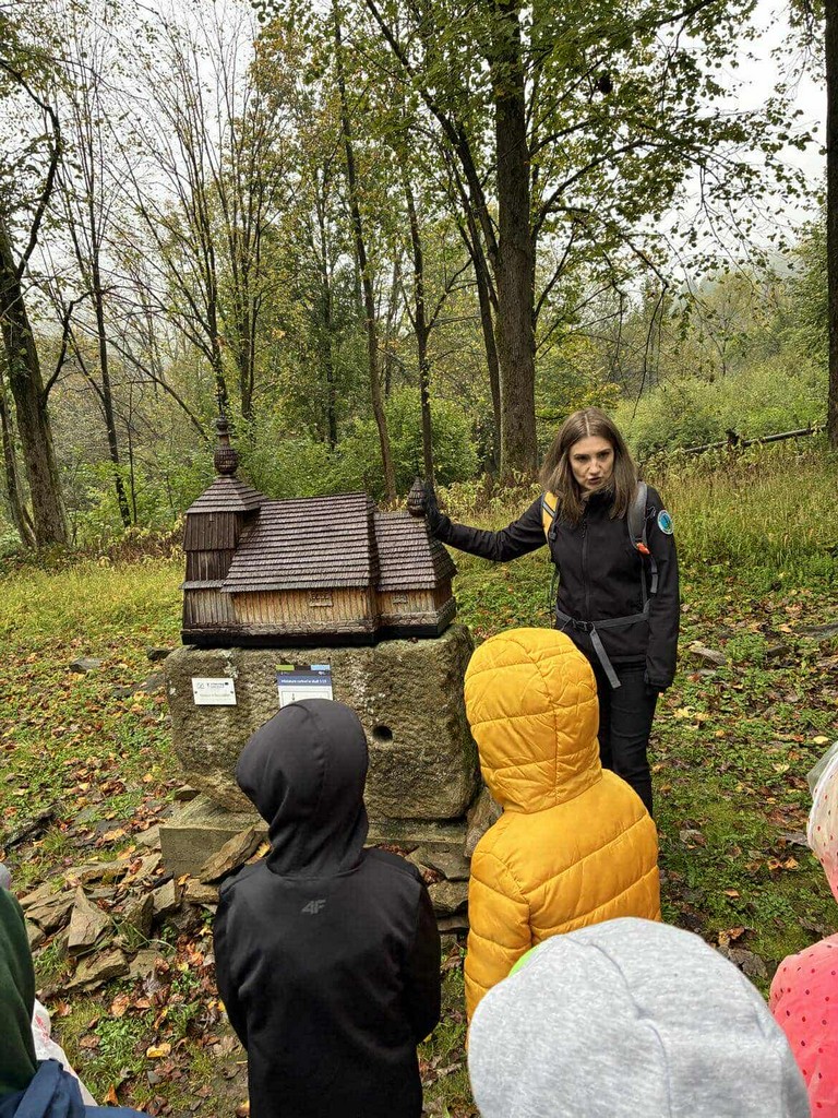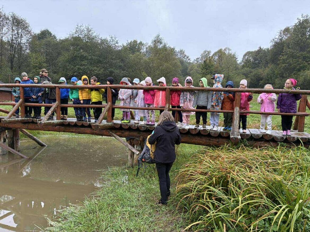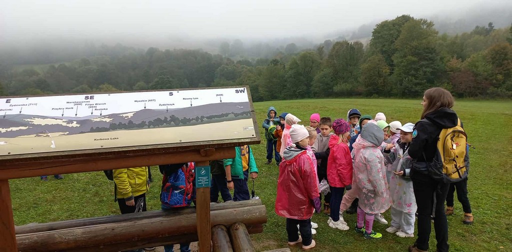 W Dzień Chłopaka – 30 września – klasa 2B wyruszyła w kolejną przyrodniczą wyprawę mająca na celu poznanie flory i fauny naszego regionu. Tym razem pojechaliśmy do Krempnej, gdzie znajduje się Ośrodek Edukacyjno-Muzealny Magurskiego Parku Narodowego. Najpierw wędrowaliśmy Ścieżką przyrodniczą o nazwie „Kiczera”. 2-godzinny spacer zaczynał się od zabytkowego starego cmentarza i prowadził poprzez różne ekosystemy: łąkę, staw, las. Przewodniczka opowiadała o roślinach i zwierzętach, które tam żyją. Jesienna łąka pełna zimowitów przypominała wiosenne łąki z krokusami. Okazało się też, że dziko rosnący barwinek – znamy z ogródka. Ze wzgórza przy punkcie widokowym Korbowa Łąka przybiliśmy ozdobne pieczątki MPN. Zaletą mglistej i wilgotnej aury były dobre warunki do obserwacji salamandry – kilkakrotnie spotkaliśmy tego rzadkiego płaza. Poznaliśmy kumaki i traszki, dowiedzieliśmy czym różnią się rogi od poroża, oglądaliśmy grzyby, rozpoznawaliśmy różne gatunki drzew. Wędrówka skończyła się ogniskiem i samodzielnym pieczeniem kiełbas. Później w budynku muzeum kontynuowaliśmy „lekcję przyrody” – z filmem, interaktywną ekspozycją na trzech poziomach, spektaklem przyrodniczym życia Beskidu Niskiego podczas czterech pór roku. Tyle ciekawych tematów w jednym dniu! 2B podsumowała ten dzień tak: „Taki Dzień Chłopaka to ja rozumiem!”.