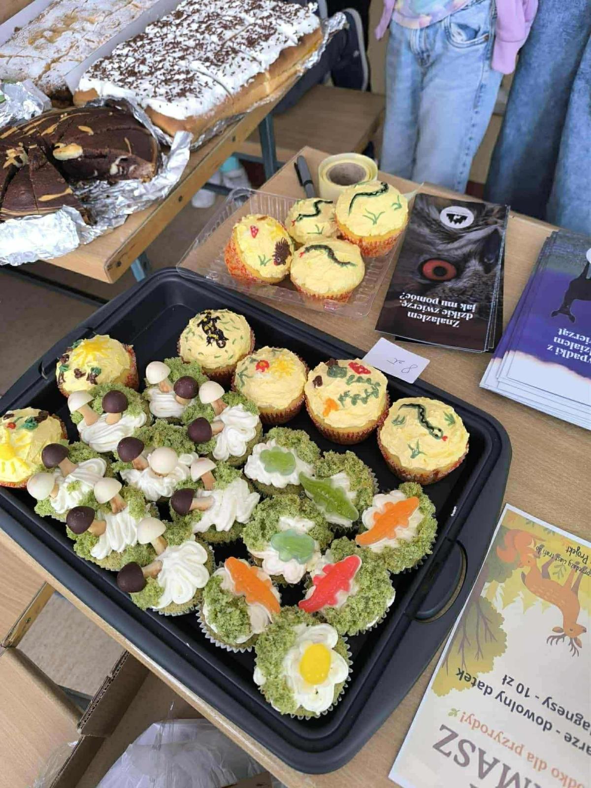 2 i 3 października na szkolnym korytarzu odbył się wyjątkowy Dziki Kiermasz. Uczniowie, rodzice i nauczyciele przygotowali pyszne domowe wypieki, które zachwycały nie tylko smakiem, ale także wyglądem. Ciasta były niezwykle kreatywne, kolorowe i nawiązywały do działalności Fundacji Dziki Projekt – można było znaleźć m.in. leśne motywy, dzikie zwierzęta czy akcenty związane z naturą. Dzięki ogromnemu zaangażowaniu całej społeczności szkolnej oraz hojności darczyńców udało się zebrać 3075 zł! Cała kwota zostanie przekazana na wsparcie działań Fundacji Dziki Projekt, która troszczy się o ochronę dzikiej przyrody. Serdecznie dziękujemy: Rodzicom – za przygotowanie i dostarczenie ciast, Uczniom – za energię, pomysłowość i pomoc w sprzedaży, Wszystkim darczyńcom – za otwarte serca i wsparcie inicjatywy. Razem pokazaliśmy, że dobro smakuje najlepiej, a pomaganie może być nie tylko wartościowe, ale też radosne i słodkie!