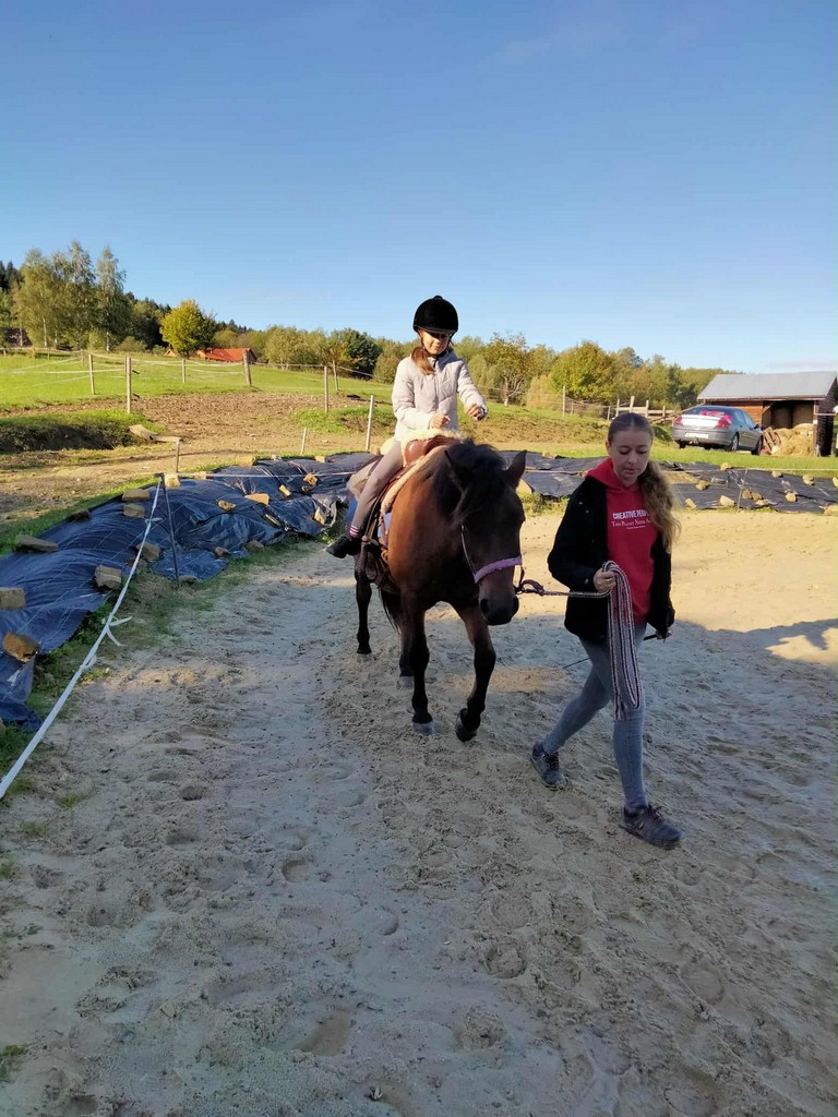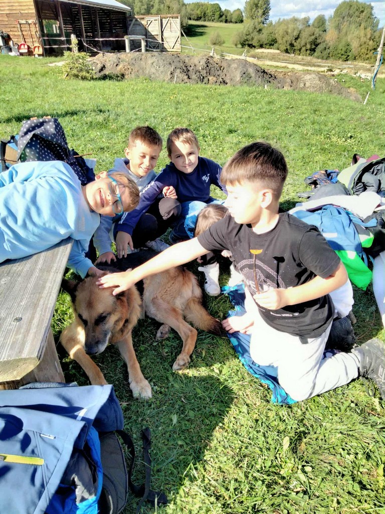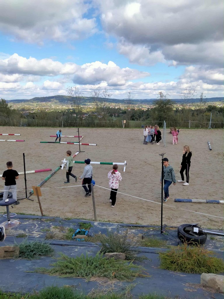 Uczestnicy mieli okazję zobaczyć stajnię, pastwiska, poznać sprzęt jeździecki, spotkać się z końmi, nauczyć się zasad zachowania w obecności koni, przejechać się konno pod czujnym okiem instruktora jazdy konnej. Plac, który na co dzień służy do jazdy konnej zamienił się w miejsce do świetnej zabawy, a drągi, opony, piłki, worki, które w stajni wykorzystywane są do treningów koni stały się świetną inspiracją do wielu zabaw. Między czasie na ognisku piekła się kiełbasa, którą ze smakiem wszyscy jedli, popijając pysznym kompotem. Pogoda w tym dniu była piękna, więc można było podziwiać piękne, rozległe tereny. To była udana wycieczka.