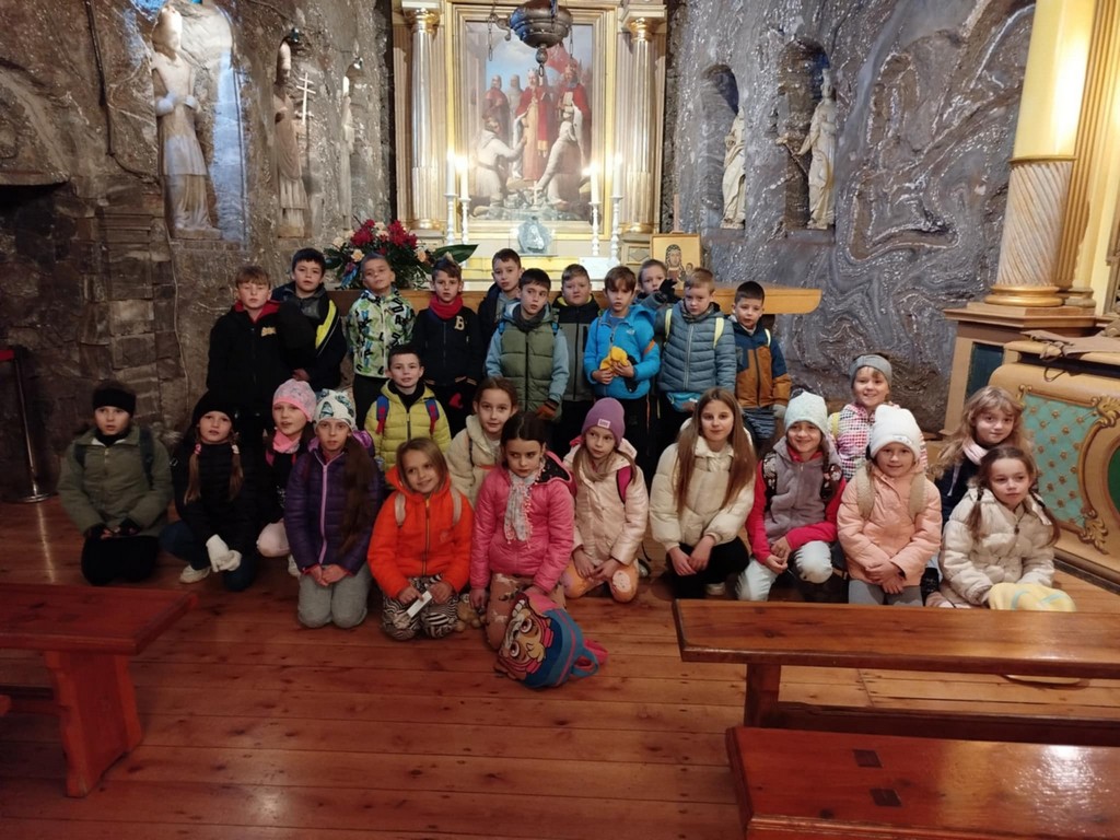 Organizacją wydarzenia zajęło się Biuro Turystyczne „Gdzie Buty Poniosą”. Pierwszym punktem programu było zwiedzanie zabytkowej Kopalni Soli Bochnia, wpisanej na listę światowego dziedzictwa UNESCO. Już sam zjazd windą na głębokość 212 metrów pod ziemię dostarczył niezapomnianych wrażeń. Uczniowie z zainteresowaniem słuchali opowieści pani przewodnik o historii kopalni, pracy górników i niezwykłych solnych korytarzach. Zachowywali ustalone zasady bezpieczeństwa mijając gęsiego inne grupy zwiedzających i pozdrawiając się zwyczajowym „Szczęść Boże”. Ogromną atrakcją okazał się przejazd podziemną kolejką oraz spotkanie z multimedialnymi postaciami, które przybliżyły życie ludzi w dawnych czasach. Nie mogliśmy darować sobie skosztowania tj. polizania solnego kalafiora. Był też czas na rekreację w Komorze Warzyn. Potem nadszedł czas na zakup pamiątek i zabawę na placu zabaw oraz solidny obiad w restauracji. Uczniowie odwiedzili jeszcze Muzeum Motyli Arthropoda, gdzie mogli podziwiać bogatą kolekcję barwnych motyli i owadów z całego świata. Wśród eksponatów znalazły się zarówno małe, delikatne gatunki, jak i imponujące okazy o egzotycznych kształtach i kolorach. Wycieczka była nie tylko wspaniałą przygodą, ale też cenną lekcją przyrody i historii. Podróże kształcą.