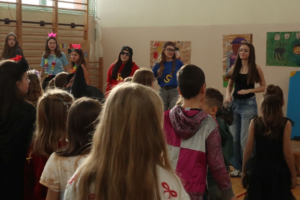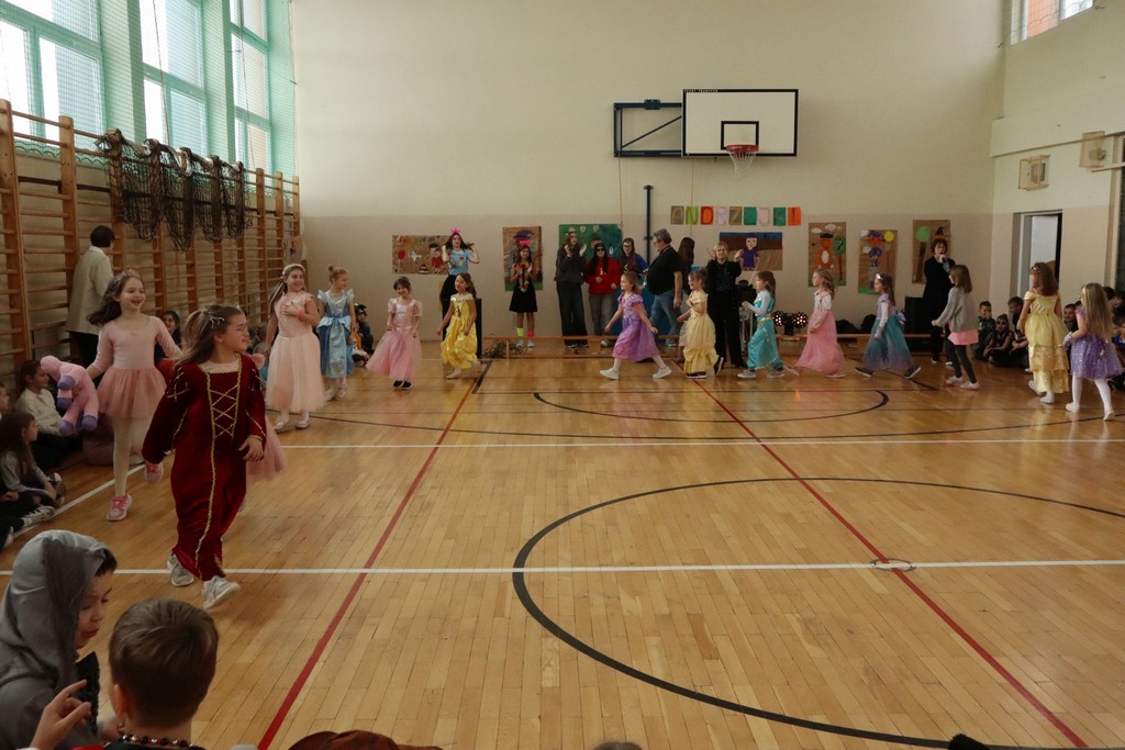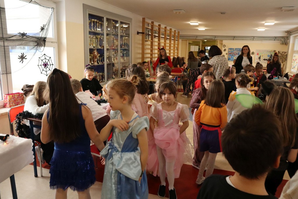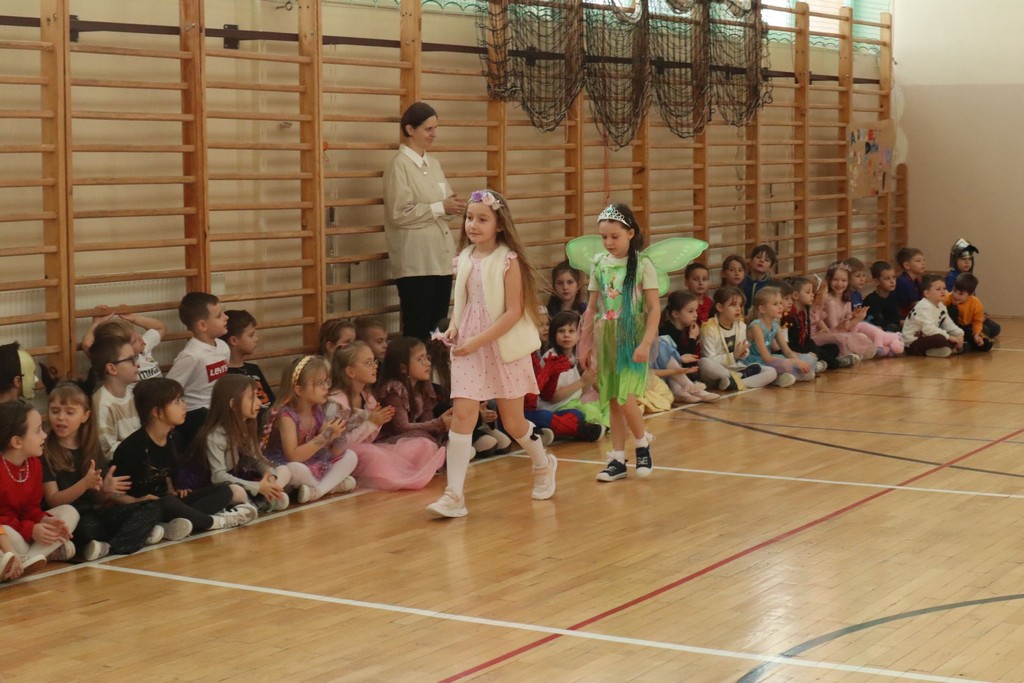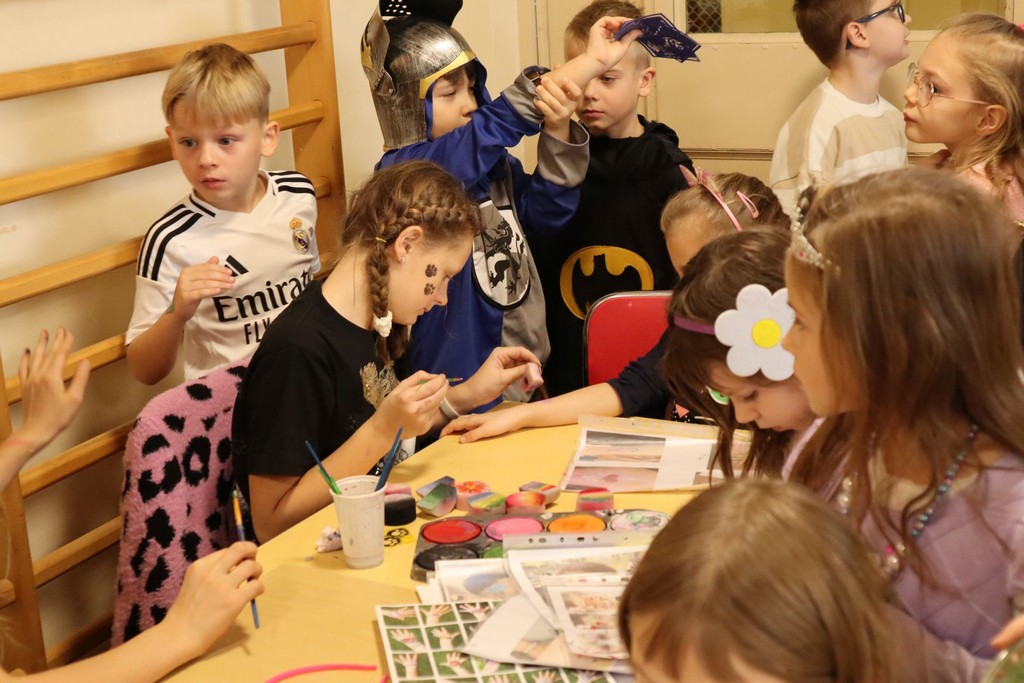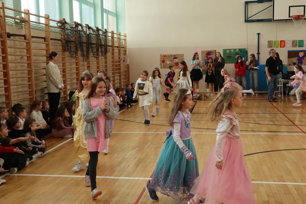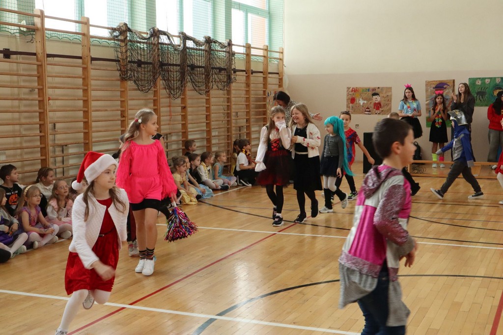 W minionym tygodniu naszej szkole odbyła się długo wyczekiwana zabawa andrzejkowa dla uczniów klas 1-3. W tym wyjątkowym dniu szkolne korytarze zamieniły się w barwną krainę pełną bajkowych bohaterów. Dzieci przyszły przebrane za postacie z ulubionych bajek, filmów i książek – można było spotkać księżniczki, czarodziejów, superbohaterów, wróżki, zwierzątka oraz wiele innych kreatywnych przebierańców.