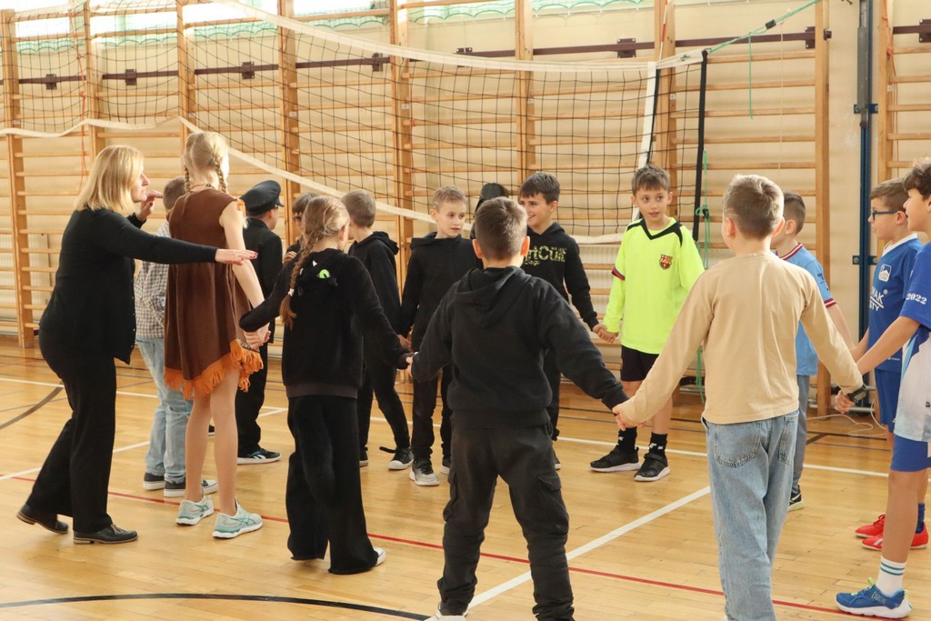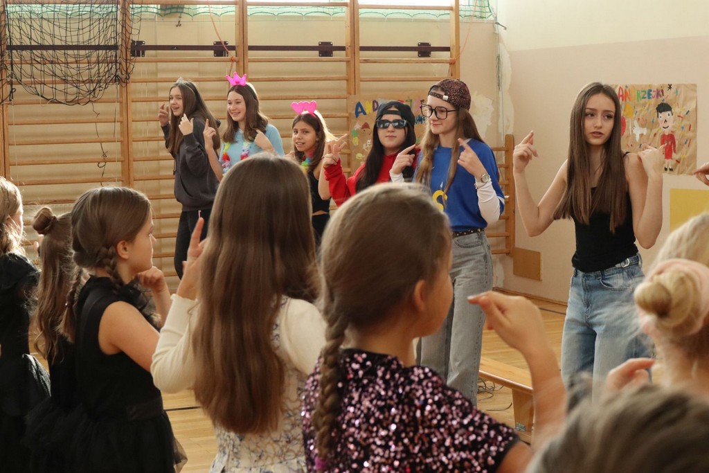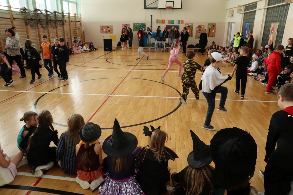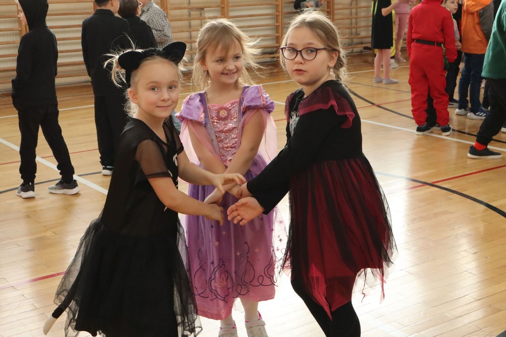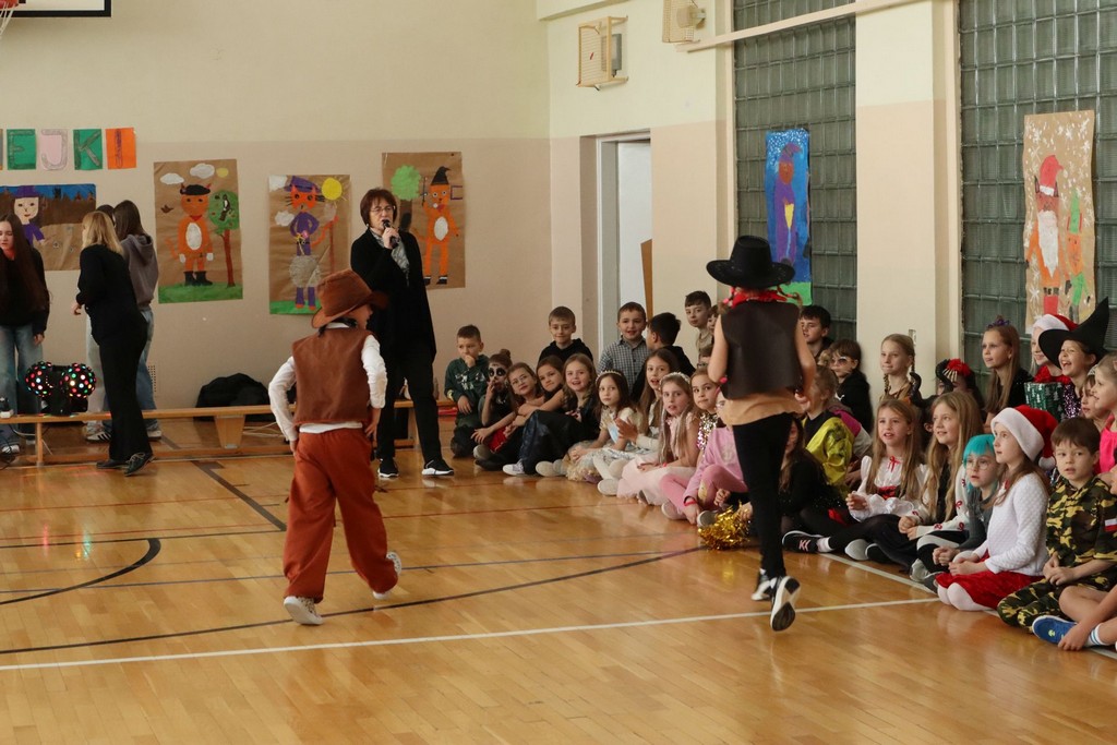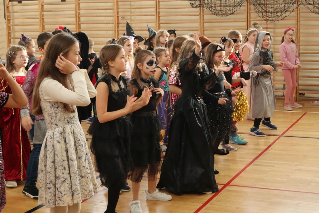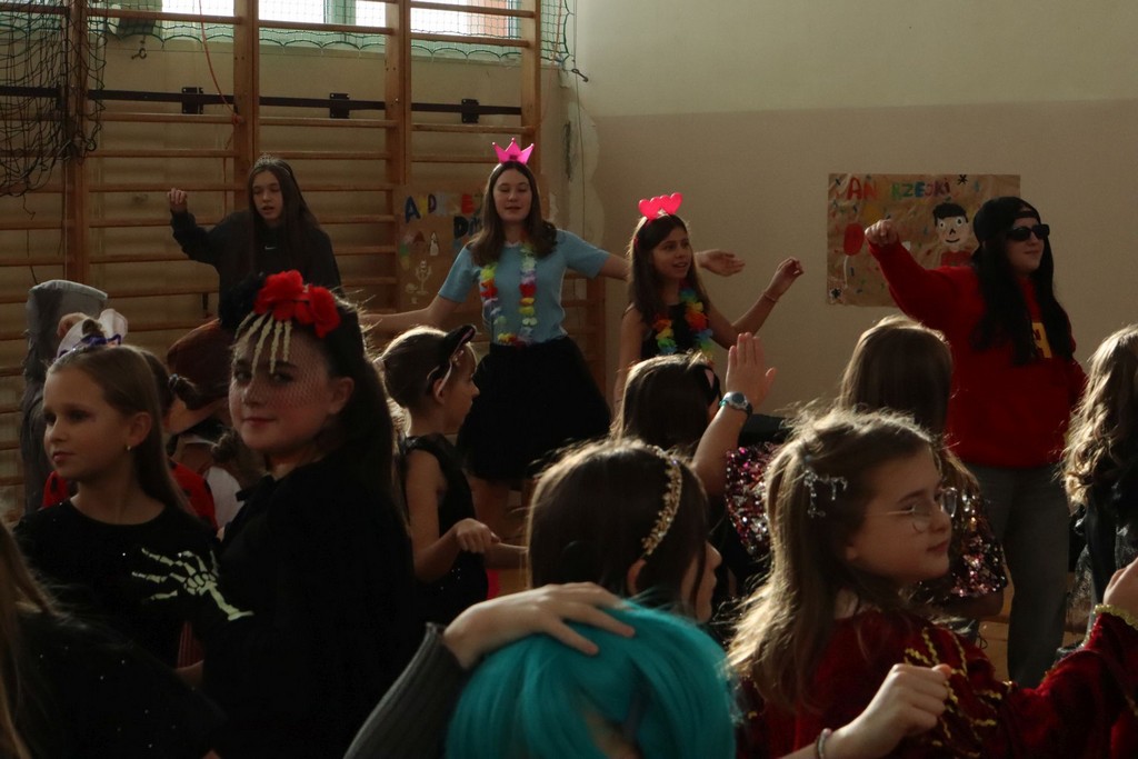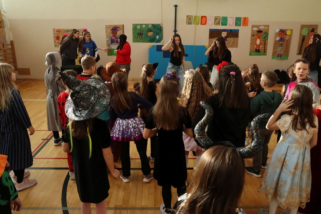 Zabawa rozpoczęła się wspólnymi tańcami i integracyjnymi animacjami, które szybko wprowadziły wszystkich w radosny andrzejkowy nastrój. Uczniowie chętnie uczestniczyli w zabawach ruchowych i konkursach, a muzyka i kolorowe stroje dodawały energii całemu wydarzeniu.