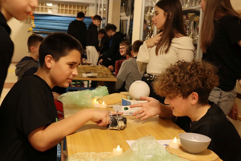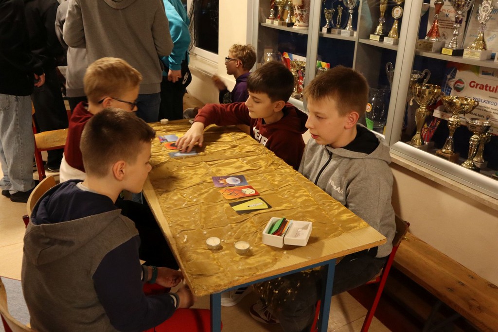 Nie zabrakło również tradycyjnego andrzejkowego akcentu — kącika wróżb. Uczniowie z ciekawością sięgali po losy, symboliczne przedmioty i kartki z wróżbami, próbując odkryć, co może przynieść przyszłość.