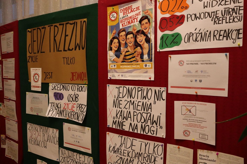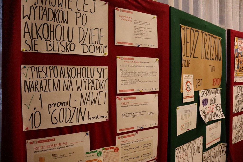 Jednym z działań była tematyczna gazetka, przygotowana przez uczniów, która informowała o zagrożeniach związanych z prowadzeniem pojazdów pod wpływem alkoholu i zachęcała do reagowania w sytuacjach, gdy ktoś naraża innych swoim nieodpowiedzialnym zachowaniem. Gazetka cieszyła się dużym zainteresowaniem odwiedzających.