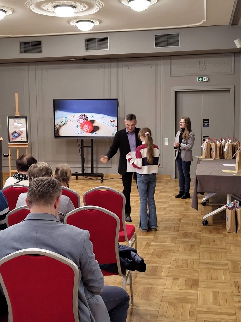 Nagrodzone prace naszych uczennic — Basi Grelak i Emilii Bartusik — zachwyciły jury nie tylko estetyką wykonania, ale także pomysłowością i dbałością o detale. Szczególne uznanie zdobyło umiejętne nawiązanie do tradycyjnych technik zdobienia pisanek, takich jak batik czy rytownictwo, a także wykorzystanie motywów charakterystycznych dla sztuki ludowej.