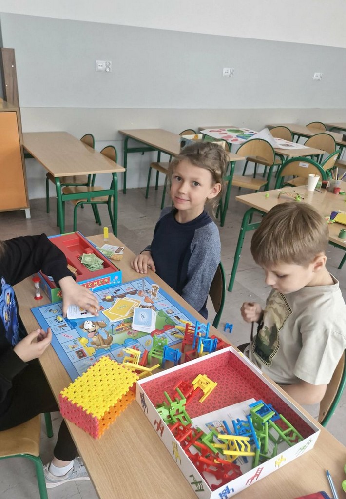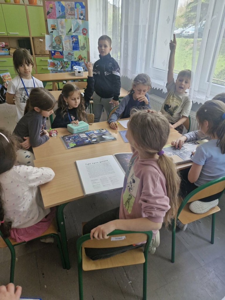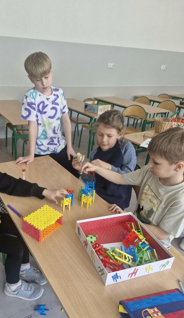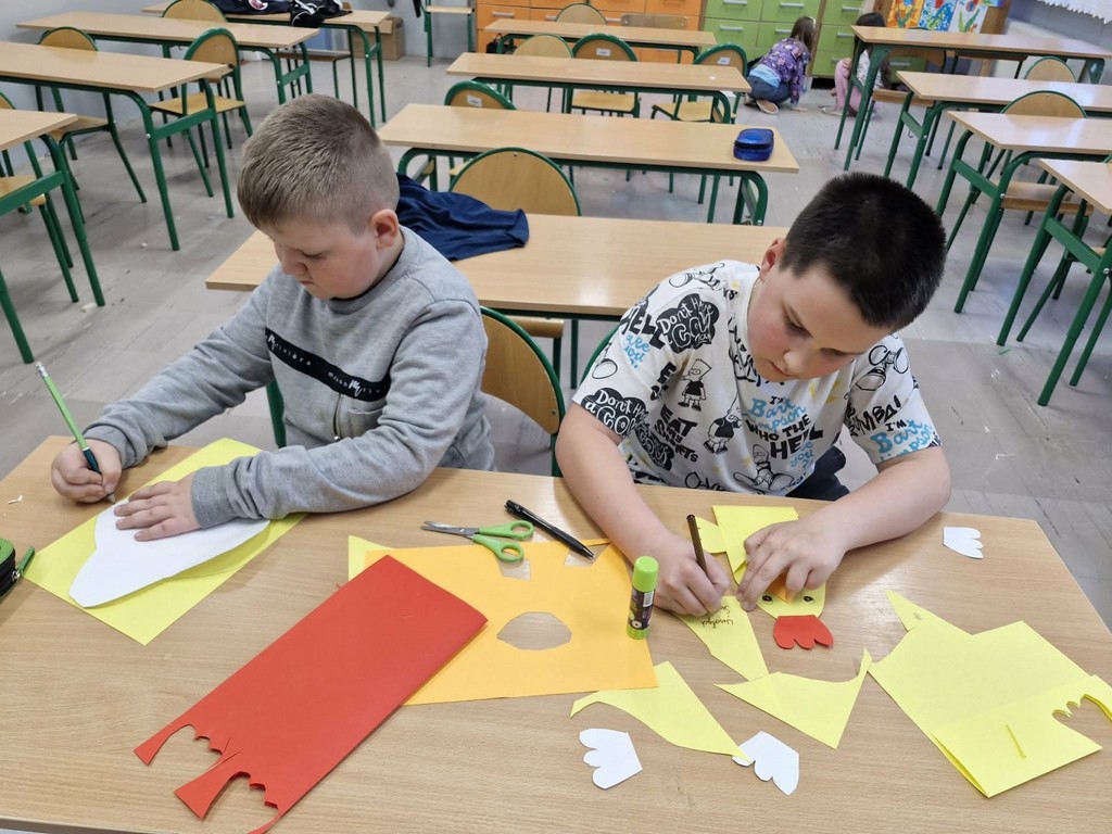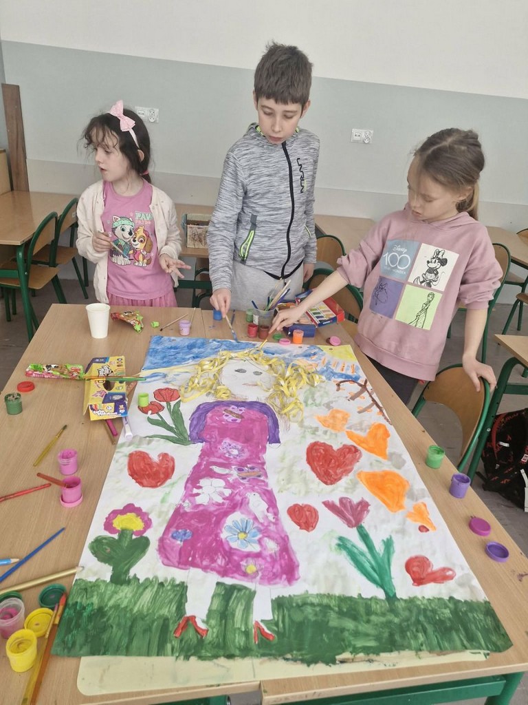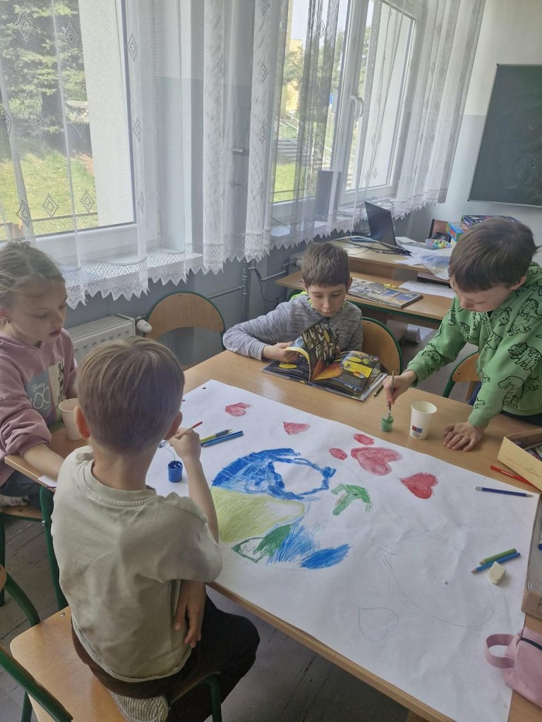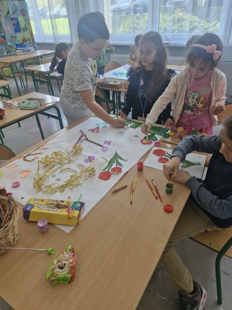 W ramach realizacji projektu „Edukacja włączająca” w świetlicy szkolnej prowadzono różnorodne działania wspierające rozwój społeczny, emocjonalny i poznawczy uczniów. Dzieci uczyły się rozpoznawania i nazywania uczuć oraz emocji, a także rozwijały umiejętność radzenia sobie z trudnymi i niechcianymi emocjami. Kształtowano postawy życzliwości i koleżeństwa poprzez zabawy integracyjne oraz ćwiczenia empatyczne. Ważnym elementem zajęć było wspólne tworzenie kręgu przyjaźni, który sprzyjał budowaniu poczucia bezpieczeństwa i przynależności do grupy. Uczniowie rozwijali umiejętności komunikacyjne, ucząc się, jak rozmawiać, aby się porozumieć, a także jak rozwiązywać konflikty w sposób konstruktywny. Regularnie uczestniczyli w zabawach integracyjnych w grupie. W ramach rozwijania kreatywności dzieci wykonywały prace plastyczne – zarówno indywidualne (kartka świąteczna, „Mój najszczęśliwszy dzień”), jak i grupowe (portret Pani Wiosny). Podczas zajęć rozwijano również myślenie przyczynowo-skutkowe, wytrwałość oraz umiejętność radzenia sobie z trudnościami poprzez gry planszowe i stolikowe, takie jak warcaby oraz inne gry edukacyjne. Istotnym elementem była także praca z książką – dzieci wyszukiwały ciekawe informacje z różnych dziedzin, np. dotyczące kosmosu, rozwijając swoją ciekawość poznawczą. Ponadto realizowano gry i zabawy ruchowe, które wspierały rozwój sprawności fizycznej. Uczniowie uczestniczyli m.in. w zajęciach z unihokeja oraz innych ćwiczeniach ogólnorozwojowych. Podejmowane działania sprzyjały integracji grupy, rozwijaniu kompetencji społecznych oraz budowaniu postaw wzajemnego szacunku i akceptacji.