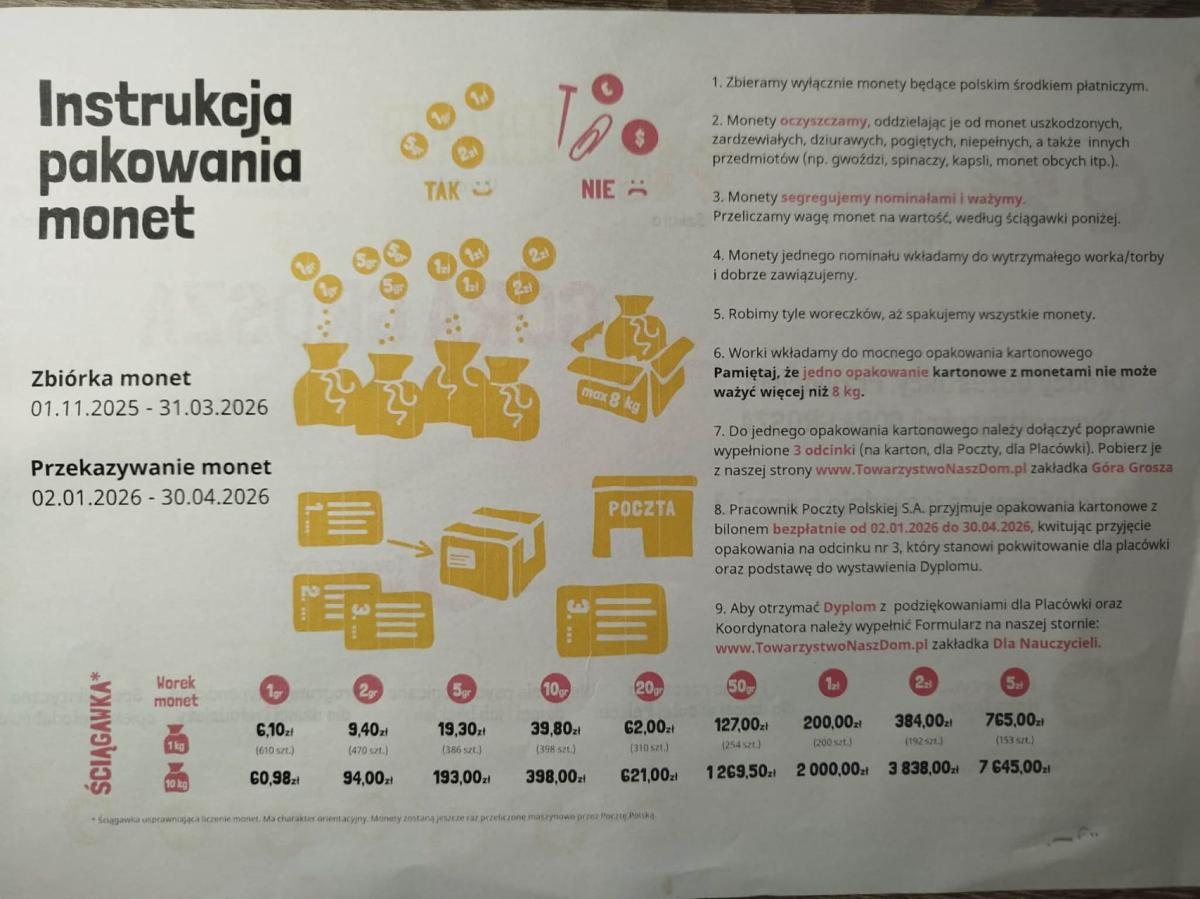 I choć co roku obserwujemy spadek zebranej sumy, to z godnie z ideą, że każdy grosz ma znaczenie, nie rezygnujemy. Zbieramy, segregujemy, ważymy, liczymy, pakujemy, przesyłamy i cieszymy się, że choć trochę pomagamy.