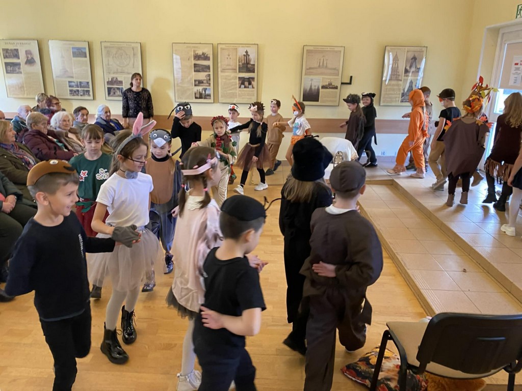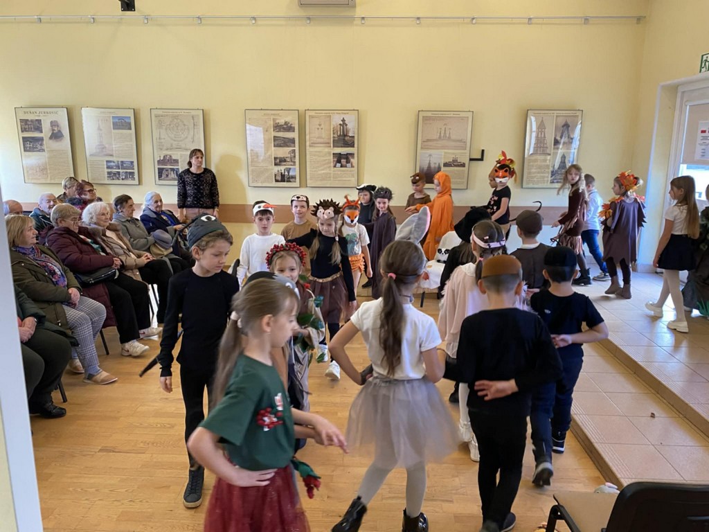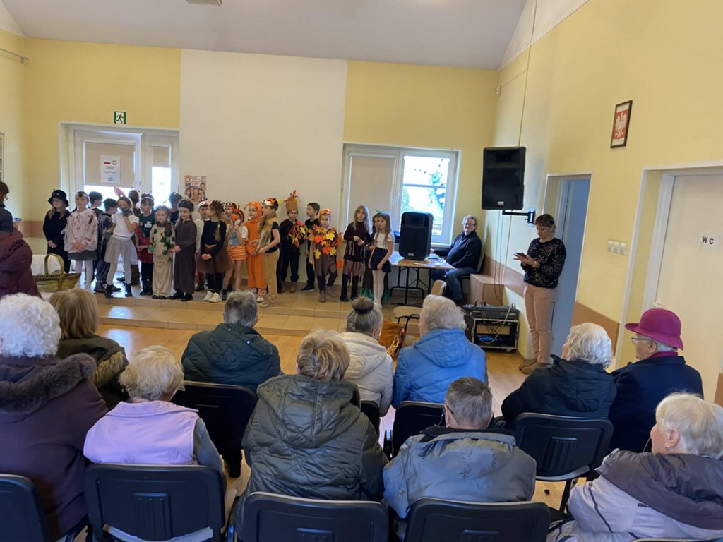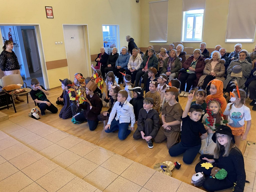Seniorzy na widowni podczas przedstawienia pt. „Bal jesieni”