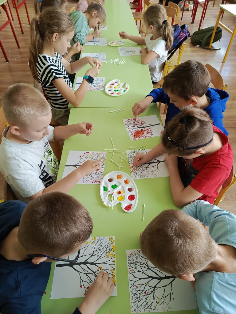 Rozmawialiśmy o emocjach, próbowaliśmy je narysować oraz odtworzyć w scenkach. Przy jesiennej muzyce relaksacyjnej tworzyliśmy kasztanowe ludziki oraz kolorowe drzewa. Zajęcia ruchowe są u nas na porządku dziennym. Treningi uważności przeplatamy jogą. Ruch to zdrowie, więc korzystamy z pięknej aury na boisku szkolnym, spacerach albo osiedlowej siłowni na świeżym powietrzu. Żeby nie było, zdrowo też jemy. Postanowiliśmy urządzić sobie seans filmowy w sali świetlicowej przy chrupaniu soczystych marchewek, oraz słodkich owoców! Było pysznie. Miłego! Już szykujemy się na listopadowe wyzwania!